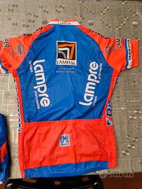 Vendo completo per ciclista blu/fucsia "Santini" composto da tutina, maglia mezza manica, guantini e copricapo