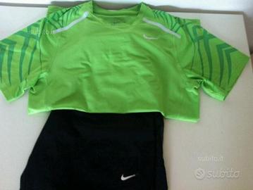 Completo da ragazzo calcio tennis o qualsiasi altro sport composto da pantaloncino nero taglia S maglietta verde taglia M marca Nike originale usato pochissimo praticamente nuovo.