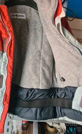 Giacca: Color arancio e grigio ghiaccio, con interno in pile grigio molto morbido e caldo. Dotata di cappuccio, tasche tecniche con zip e polsini regolabili.