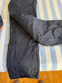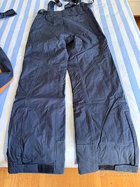 Pantaloni con bretelle staccabili, velcri laterali per regolazione micrometrica in vita cerniere zona scarpone e ghette interne.