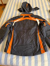 Tuta in ottime condizioni, giacca con moltissime tasche esterne ed interne. Zip sui fianchi per aerazione, blocco interno per evitare infiltrazioni aria o neve e cappuccio staccabile.