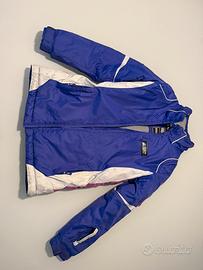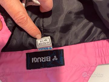 Completo sci bimba taglia 7/8 anni pantaloni con bretelle guacca con cappuccio