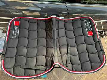 Set sottosella + cuffietta nero con bordi rossi NUOVO CON ETICHETTA, disponibili foto dell’etichetta