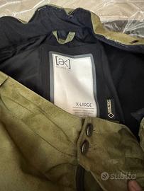 Bellissimo completo da snowboard in GoreTex: Shell analog blu, taglia "L" in goretex (è una marca di Burton) e pantalone Burton AK Taglia "XL" in goretex verde camo.