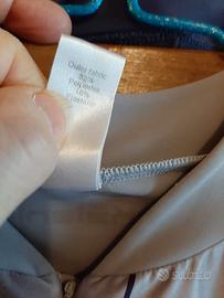 E' composto da maglia a maniche corte con cerniera tipo polo e tasche sulla schiena e pantalone a gamba dritta.