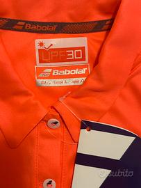 Maglietta da tennis Babolat arancione con protezione solare UPF30.