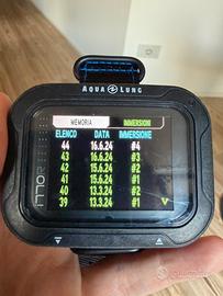 Vendo per inutilizzo computer subacqueo Aqualung i770R completo di trasmettitore (sonda) BK-2. L'attrezzatura è stata tenuta con cura, sempre sciacquata in acqua dolce dopo ogni utilizzo. Lo schermo TFT a colori è perfettamente leggibile. Dettagli tecnici: • Immersioni effettuate: Solo 44. • Sonda/Trasmettitore: Circa 20-25 utilizzi. • Dotazione: Scatole originali, cavo di ricarica USB, cinturino in nylon (bungee kit) e manualistica. Caratteristiche principali: • Display TFT a colori ultra-luminoso ad alta risoluzione. • Interfaccia Bluetooth per gestire i log tramite App DiverLog+. • Bussola digitale a 3 assi con compensazione completa del tilt. • Integrazione aria senza frusta (con il trasmettitore incluso). • Batteria ricaricabile ai polimeri di litio.