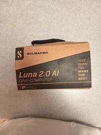 Computer subacqueo Scubapro Luna 2.0 – con trasmettitore wireless incluso Display LCD retroilluminato, caratteri grandi, housing termoplastico sottile e compatto. 2 algoritmi a scelta (Bühlmann ZH-L16 ADT MB PMG o ZH-L16+GF), 3 modalità (Scuba/Gauge/Apnea), compatibile nitrox 100% con 3 gas. PDIS, 6 livelli di microbolle. Trasmettitore Smart+Pro incluso per monitoraggio wireless pressione bombola e calcolo RBT. Bluetooth per scarico dati su iOS/Android/PC. Firmware aggiornabile dall'utente. Cinturino silicone blu, fibbia acciaio inox, protezione schermo preinstallata, batteria CR2450 sostituibile (fino a 2 anni/300 immersioni).