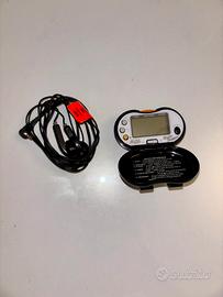 Praticissimo contapassi OREGON SCIENTIFIC PE316FM nero. Permette il calcolo dei chilometri percorsi, valutando il numero di passi che facciamo. Con coperchio che protegge il display LCD. All'interno del coperchio sono presenti le istruzioni per il funzionamento (in Inglese). - MODE, per l'impostazione delle diverse funzioni (sono presenti infatti tre modi di display: STEP, DIST/TIMER e STRIDE); - ST/SP, il tasto di avvio e stop per avviare o fermare il timer addizionale; - Tasto di retroilluminazione "HiGlo"; - RESET, il tasto di azzeramento dei dati impostati; - Tasto scorrevole che permette di aumentare o ridurre la reazione di movimento; - Radio FM con il tasto SCAN che permette di cambiare stazione. - Dimensioni: 64 x 42 x 32 mm (lunghezza x larghezza x altezza). Perfettamente funzionante, utilizzato pochissimo. Solo le batterie da sostituire.