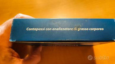 contapassi con analizzatore di grasso corporeo, conteggio calorie, peso specifico, distanza percorsa, orologio, sveglia