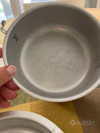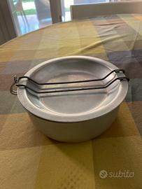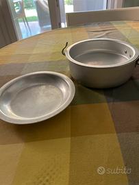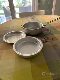 Escursionismo e sopravvivenza , per il trasporto cibo per pranzo a sacco , kit 3 pezzi (piatto, zuppa) in metallo alluminio leggero , manico pieghevole per antiscottatura misure cm 18,5x17,5x8