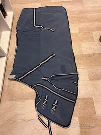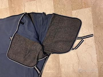 Coperta da cavallo con interno in cotone felpato. Misure dal garrese ad attacco coda 135 cm. Marca Umbria Equitazione (ma senza etichetta).