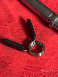 Vendo coppia di aste per manubri professionali in acciaio cromato, complete di 4 molle ferma-disco originali. Le aste presentano un'impugnatura zigrinata che garantisce una presa salda e sicura anche durante gli allenamenti più intensi. Sono compatibili con tutti i dischi a foro standard (25/28mm). • Materiale: Acciaio cromato pieno (molto resistenti). • Accessori inclusi: 4 molle blocca-disco in acciaio con terminali in gomma. • Compatibilità: Dischi standard (Decathlon, High Power, etc.). • Stato: Come nuove, senza segni di ruggine.