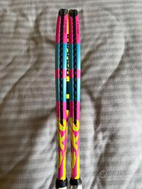 Piatto corde: 100 sq. in. Profilo: 23/26/23 mm Schema d’incordatura: 16x19 Peso senza corde: 317 g Bilanciamento (senza corde): 33 cm Rigidità: 68 RA Inerzia: 350 Manico: L3 Tre mesi di vita, una è immacolata con un ora di allenamento neanche, l'altra normali segni di gioco e un saltino laterale dovuto a caduta accidentale dalla panchina. Montano le PRM Blast 1.25 23/22kg. Prezzo per la singola: 160€