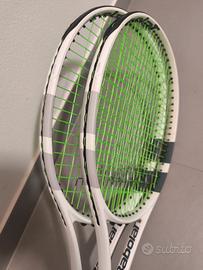 Vendo coppia Babolat Pure strike versione Dominic Thiem 305 g 16 x 19, incordate entrambe Solinco Hyper Pro 1.20 a 21 kg. Tenute come da foto molto bene. Misura manico 3, sempre usato sovragrip.