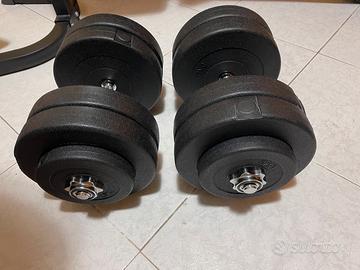 Vendesi coppia di manubri in polietilene usati pochissimo. Il kit comprende 8 dischi da 5 chili + altri 4 da 1,5. Cedo inoltre i manubri e i fermadischi a 40 euro non trattabili in quanto parliamo complessivamente di ben 50 chili in tutto.