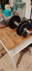 Coppia di manubri pesi in ghisa acquistati durante lock down covid. regolabili... in questo momento pesano intorno ai 10kg per manubrio.