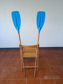 Vendo coppia di remi per canottaggio/kayak in ottime condizioni. CARATTERISTICHE: • Lunghezza: 146 cm • Manico in legno • Pale blu in materiale plastico resistente • Perfetti per canoa, kayak o piccole imbarcazioni I remi sono stati utilizzati pochissimo e presentano minimi segni di usura. Ideali per chi pratica canottaggio amatoriale o per chi ha bisogno di remi di ricambio, belli anche come pezzo d'arredo.