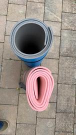 Vendo due tappetini: •uno ideale per fitness/allenamento •uno perfetto per yoga Il tappetino fitness è in condizioni perfette. Quello da yoga presenta solo qualche segno (unghiata del gatto), ma è comunque perfettamente utilizzabile ed è dotato di tracolla per il trasporto, comodo da portare in palestra o all’aperto.