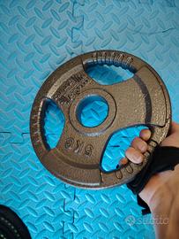 Vendo coppia di dischi in ferro per bilancieri olimpionici, con comoda presa trigrip, nuovi. Nell'annuncio foto di dischi identici che sto utilizzando io, quelli che vendo non sono mai stati utilizzati, è una coppia nuova che ho in più.