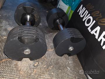 Vendo per inutilizzo coppia di manubri da 18KG. sarebbero manubri regolabili tipo lacertosus ma il meccanismo è bloccato, quindi li vendo come se fossero manubri a peso fisso o come ricambi. no perditempo grazie.