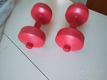 Vendo coppia manubri made in Italy marca Lineaflex. Attualmente il peso è kg. 2,5 l'uno ma tramite l'apposita vite è possibile riempirli con materiale diverso (sabbia, piombo, acqua, ecc.) per aumentare o diminuire il peso. Prezzo non trattabile. Non spedisco.