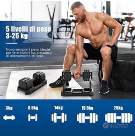 Nuovi Mai usati 25kg Manubri Regolabili con Base Porta Pesi, Set Manubri Componibili con 5 Pesi in 1