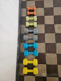 Vendo per inutilizzo coppia di manubri in neoprene (gomma) per palestra. Peso 3 kg ciascuno. Vendo per inutilizzo. Prezzo riferito alla coppia. Dispongo delle seguenti coppie di manubri da vendere (guardare gli altri annunci): 3kg, 6kg, 8kg, 9kg, 10kg. Valuto offerta per ritiro in blocco. Considerato il peso, preferisco consegna a mano su Milano. Spedizione da valutare in base al peso. I pesi sono in buone condizioni, ma andrebbero puliti per rimuovere aloni e polvere, dal momento che non sono stati usati per diverso tempo.