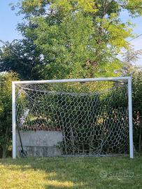 Vendo 2 porte regolamentari da calcio a 5, struttura in metallo verniciato, complete di reti. Condizioni buone, usate pochissimo.