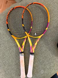 Racchette Babolat Aero Pro (modello con cui giocava Nadal) usate ma belle tenute benissimo. Piatto 100, peso 300. Sono vendibili anche singolarmente. Ho anche il fodero grande eventualmente.
