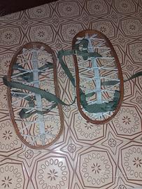 Vendo coppia di racchette da neve vintage in legno, perfettamente conservate, con corde originali e cinghie regolabili.