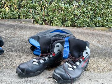 Coppia sci da fondo comprensivi di scarponcini e bastoni,un modello uomo,un modello donna,ottimo stato,possibilità di essere venduti separatamente :