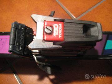 Coppia di sci marca blizzard 12 modello 160 sport, system sandwich integral made in austria color nero con scritte e finiture fucsia, r. gattringer design, misura 160 cm., con attacchi originali tyrolla mod. 180 regolabili.