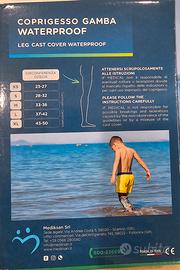 COPERTURA PROFESSIONALE GESSO WATERPROOF GAMBA TG. S - 100% Neoprene NUOVO MAI USATO IN ACQUA SENZA PROBLEMI: Guaina in neoprene completamente impermeabile. Progettata per essere indossata sopra il gesso, è ideale per essere utilizzata per la doccia, il bagno, la piscina o andare in spiaggia. Completamente impermeabile, è realizzato in neoprene e può essere completamente sommerso. Questo prodotto supera l’inconveniente di avere il gesso, consentendo di fare il bagno o la doccia normalmente. Inoltre può essere utilizzato per proteggere ferite, ustioni, ecc. Per gesso soloGAMBA. Il neoprene, materiale usato anche per la produzione di mute subacquee, è un prodotto artificiale, spugnoso, a struttura microcellulare; simile alla gomma, ma è più leggero e con un’alta capacità termica e di isolamento, pertanto questo ateriale funge da barriera tra ambienti diversi, come ad esempio tra il caldo e il freddo o tra l’aria e l’acqua. ISTRUZIONI: per indossare correttamente la copertura waterproof per la gamba è necessario l’aiuto di una seconda persona. 1. rovesciare la fascia superiore "A" oltre la cucitura fino al piede; 2. allargare il bordo e inserire l’arto; 3. con entrambe le mani tirare la guaina e ricoprire completamente la parte medicata (gesso, fasciatura...); 4. girare la fascia A sulla coscia oltre il ginocchio (almeno 10 cm sopra) e verificare che prema sulla pelle per garantire la tenuta stagna. Pulizia:sciacquare a mano accuratamente con acqua corrente, eventualmente utilizzare un detersivo neutro; asciugare all’aria, lontano da fonti di calore e da irradiazione solare diretta TAGLIA:S LUNGHEZZA COPRIGAMBA "L" cm:55 CIRCONFERENZA "C" cm:28-33