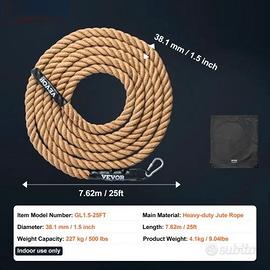 Corda da Arrampicata 7,62 m Corda da Allenamento Fitness Palestra, Lunghezza Diametro 38,1 mm Corda di Luta Multiuso Esercizi di Arrampicata Allenamento della Forza per Alpinismo Arrampicata