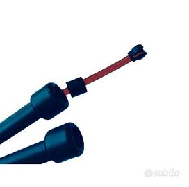 Per regolare la corda in base alla propria altezza (la corda è lunga ben 300 cm) bastano pochi secondi, è sufficiente estrarre l' estremità della corda da una maniglia, estrarre il ferma corda (come da illustrazione), tagliare la corda alla lunghezza desiderata e riposizionare il fermacorda con un "click".