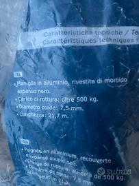 •Maniglia in alluminio, rivestita di morbido espanso nero. • Carico di rottura: oltre 500 kg. • Diametro corda: 7,5 mm. • Lunghezza: 21,7 m.