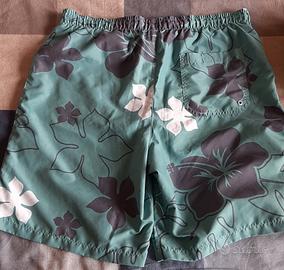 costume da bagno uomo decathlon, floreale, verde acqua, viola. con tasca posteriore