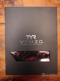 Costume Costumone da gara TYR Donna per attività di nuoto agonistico, colore rosso, materiale di una fibra ultra morbida, modello genesis open back, taglia 26.