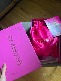 Costume da gara di SV bikini,prezzo d’acquisto 720 euro nuovo,indossato una volta per la gara.Reggiseno imbottito con ulteriore push up removibile.Altezza 165-173 circa,coppa reggiseno B/C