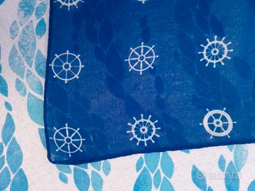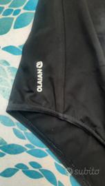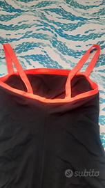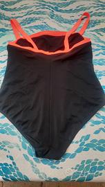 Ottime condizioni. Costume nero e rosso corallo taglia 48 Olaian. Pareo azzurro con timoni bianchi cm 78 x cm 160.