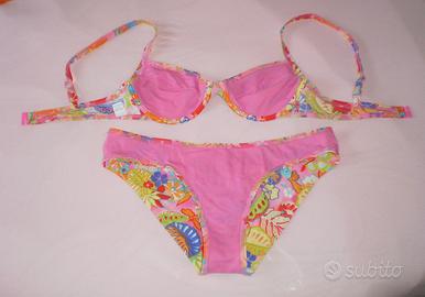 DESCRIZIONE: costume da bagno 2 pezzi Sloggi Swim Maui CROW e TAI; taglia italiana 46; colori floreali a fantasia tendenzialmente sul rosa; materiale 72% polyamid/nylon - 28% elastan; vedere foto che rispecchiano la realtà dell'articolo proposto