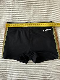 Costume nero, modello pantaloncini con elastico e codina in vita, stesse misure dello slip supereroi