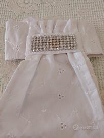 Cravatta bianca, marca Hkm, in sangallo e brillantini, per equitazione e dressing, condizioni perfette. Possibile la spedizione.