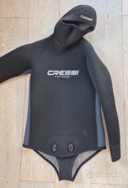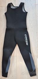 Portato solo 2 volte, vendo per inutilizzo muta subacquea Cressi Fisterra 8 mm. Taglia L/4 (vedi sito della Cressi per tabella taglie). Ecco le specifiche tecniche: Ilneoprene LC a bassa compressionegarantisce un’ottimaprotezione termicadovuta alla sua altaresistenza alla compressione, ideale soprattutto per lavori professionali o immersioni di lunga durata. Lafodera esternain nylon ad elevata densità è molto resistente e l’interno in X-Plushelastico, idrofugo e di gran scivolamento che facilita la vestibilità,massima termicità. Ampieginocchiereegomitiere antiabrasioneinSupratex. Bordi a tenuta stagnadi 5mm in neoprene liscio interno in viso, polsi e caviglie specialmente resistenti e stagne.