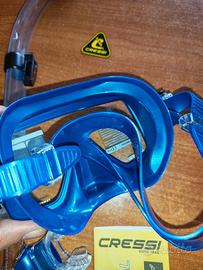 CRESSI maschera SF1 & Dry Combo - Set Maschera Frameless Squadrata con Lente Temperata + Snorkel Dry ideale per Immersioni Apnea e Snorkeling, Blu Metal, Taglia Unica Unisex adulto.