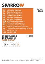Dispositivo di discesa e salvataggio EN 341:2011-2A, carico massimo di lavoro 150 kg,massima altezza di discesa 180 m, da utilizzare esclusivamente con le corde indicate in tabella.( Vedi note del produttore). Attrzzo nuovo Mai utilizzato!Prezzo trattabile