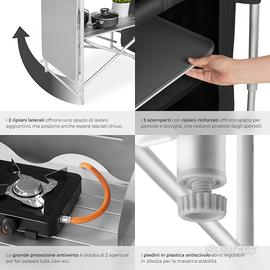 SUPERIOR QUALITY & STABILITY: Built with heat-resistant materials and equipped with a wind shield, our outdoor kitchen ensures maximum safety while cooking. The adjustable feet ensure unparalleled stability on any surface, while the aluminium reinforced construction promises durability and durability. Ideal for taking on the most extreme adventures with the peace of mind of a reliable and safe kitchenette.