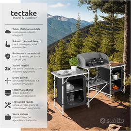 TecTake® Camping Kitchen, Camping Furniture with Worktop and Shelves, Folding Outdoor Kitchen, Suitable for Gas Stove, Carry Bag Included