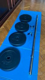 Vendo Curl Bar (bilanciere) Gorilla Sports da 8kg, 1.20m e diametro 30mm con due molle ferma pesi annesse. In dotazione anche set di pesi Physionics (4x5kg). Tutto in ottime condizioni.